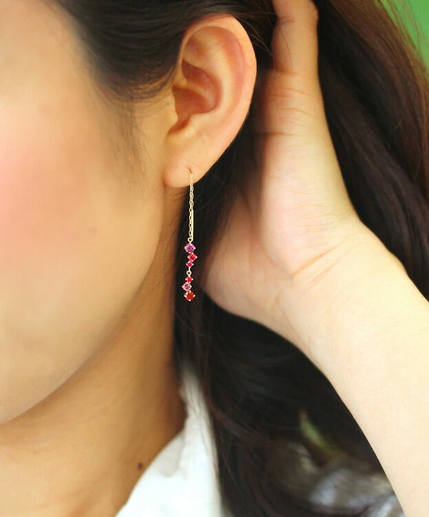 赤バラ色 マルチカラー天然石 K10 K18 ゴールド アメリカンピアス・ブルミネス 日本製 ロードライトガーネット レッドスピネル ルビー レディッシュサファイア ピンクトルマリン 10K 10金 18K 18金