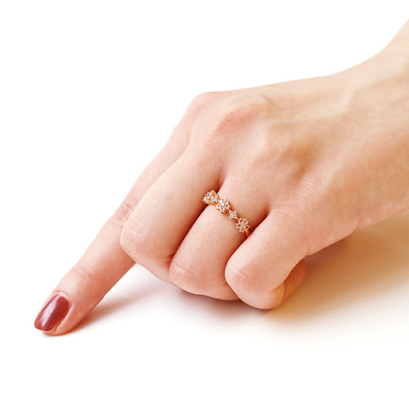 桜モチーフ ローズクォーツ ダイヤモンド K18ピンクゴールドリング・パルフィオレン 18K 18金 日本製