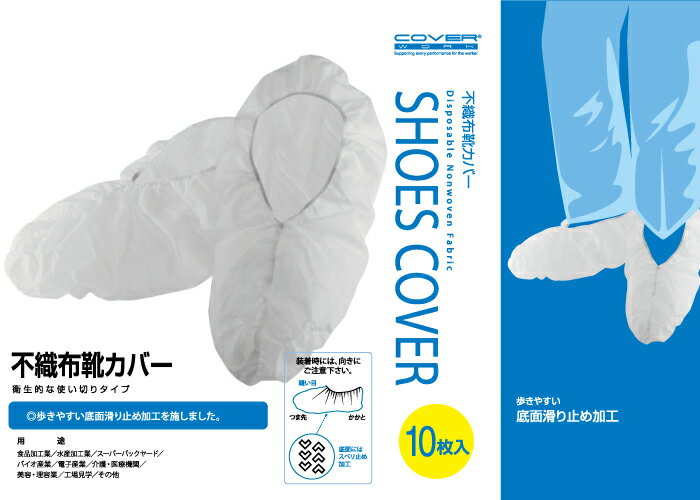 COVERWORK カヴァーワーク (FT-904) 不織布 足カバー すべり止め付き使い捨てシューズカバー 10枚入り 靴カバー 衛生 清潔 【ワーク】 【作業用品】