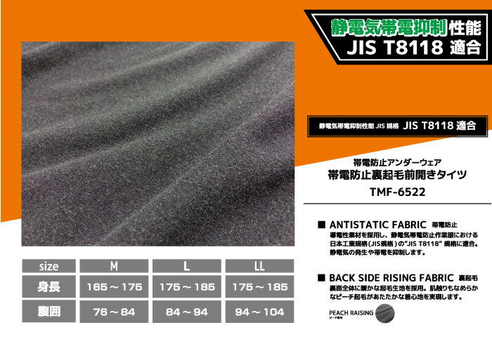 COVERWORK カヴァーワーク (TMF-6522) 帯電防止裏起毛前開きタイツ JIS T8118規格対応 アンダーウェア 裏起毛【ワーク】 【作業用品】 【インナー】
