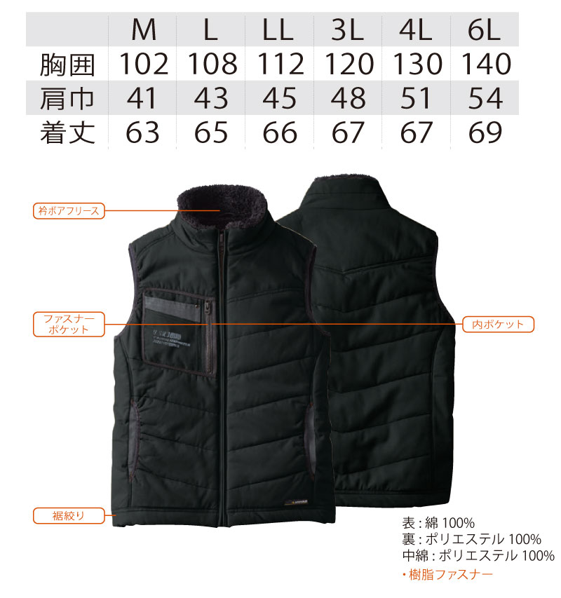 SOWA (5106) 防寒ベスト 作業着 上着 メンズ 男性用 微起毛 綿100% M~LL 【ワーク】 【作業服】