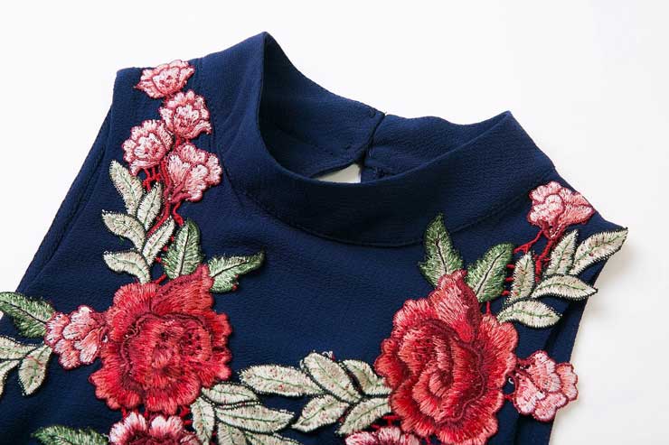 フロントの刺繍が大人っぽい印象に♪ローズ刺繍のフレアヘムミニワンピース ■ ワンピース ワンピ 入学式 結婚式 入園式 卒業式 二次会 OL オフィス レディース ショート丈 花柄 刺繍 春 夏