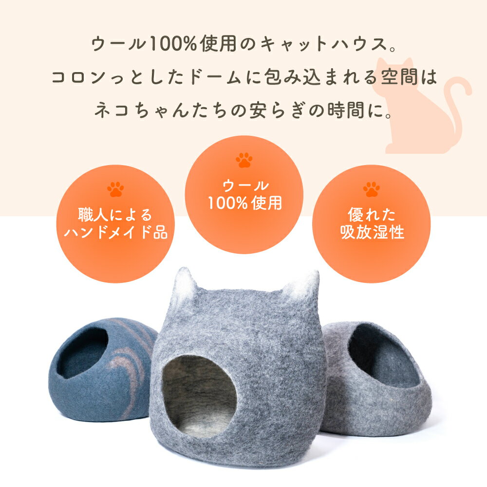 【 高品質ウール100% 猫 ドーム ハウス フェルト キャットハウス 】 ペット ねこ ネコ 猫ハウス 猫用 犬用 通気性 保温 涼しい 吸湿 吸放湿性 ベッド マット インテリア フェルト ウール オールシーズン 夏 冬 手作り ハンドメイド かわいい 小型犬 室内 お家 人気 おすすめ