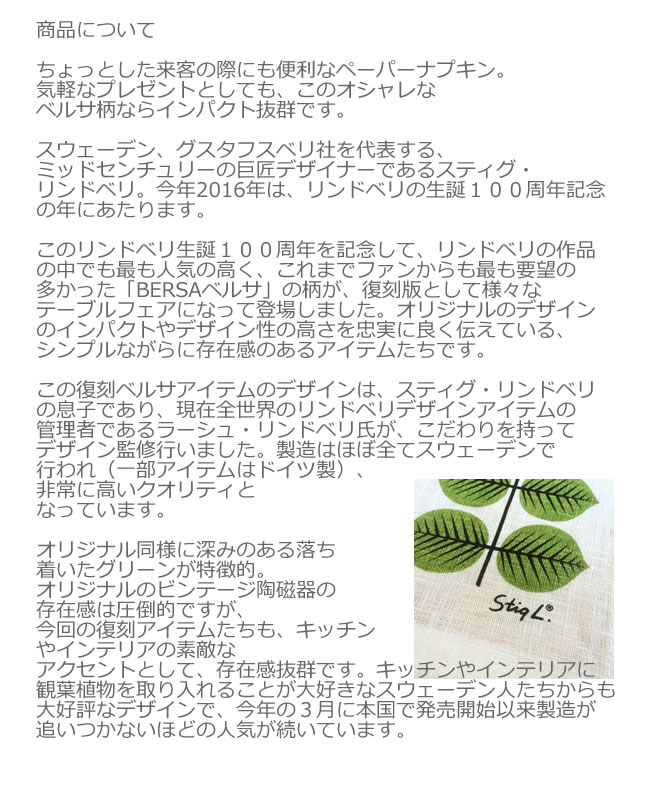 【メール便OK】Stig Lindberg ベルサ ペーパーナプキン 20枚入り 30x30cm スティグ・リンドベリ A3 profil 10P03Dec16