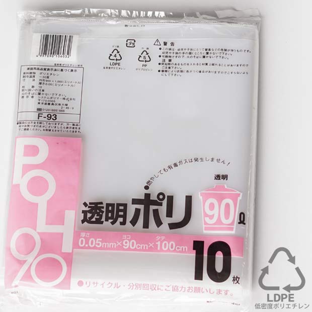 システムポリマー F-93 透明ポリ袋 90L 10P(ごみ袋 ゴミ袋 ビニール袋 POLI 90リットル 厚み0.05mm 厚口 厚手)【単】