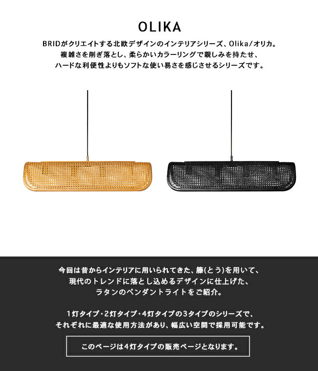 ラタン ペンダントライト 4灯 OLIKA オリカ RATTAN PENDANT LAMP 4BULB 北欧 モダン ジャパンディ 和モダン アジアン ミニマル ダイニング リビング キッチン 6畳 8畳 10畳 ナチュラル ブラック 籐 とう ラタン MD-003395 BRID おしゃれ ライト 照明 (CP4 (PX10