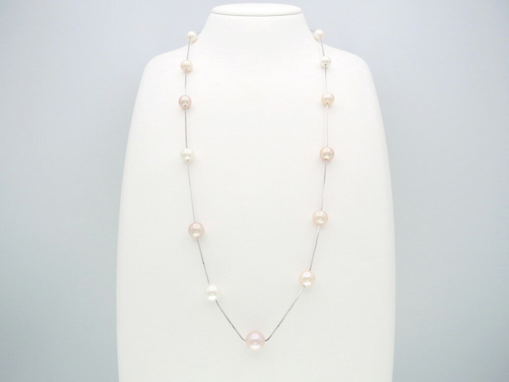 【全品ギフト包装】≪ ペールカラー ≫ 淡水真珠ステーションネックレス 約7.0-8.5mm SV y-n-633 三重県真珠加工販売協同組合