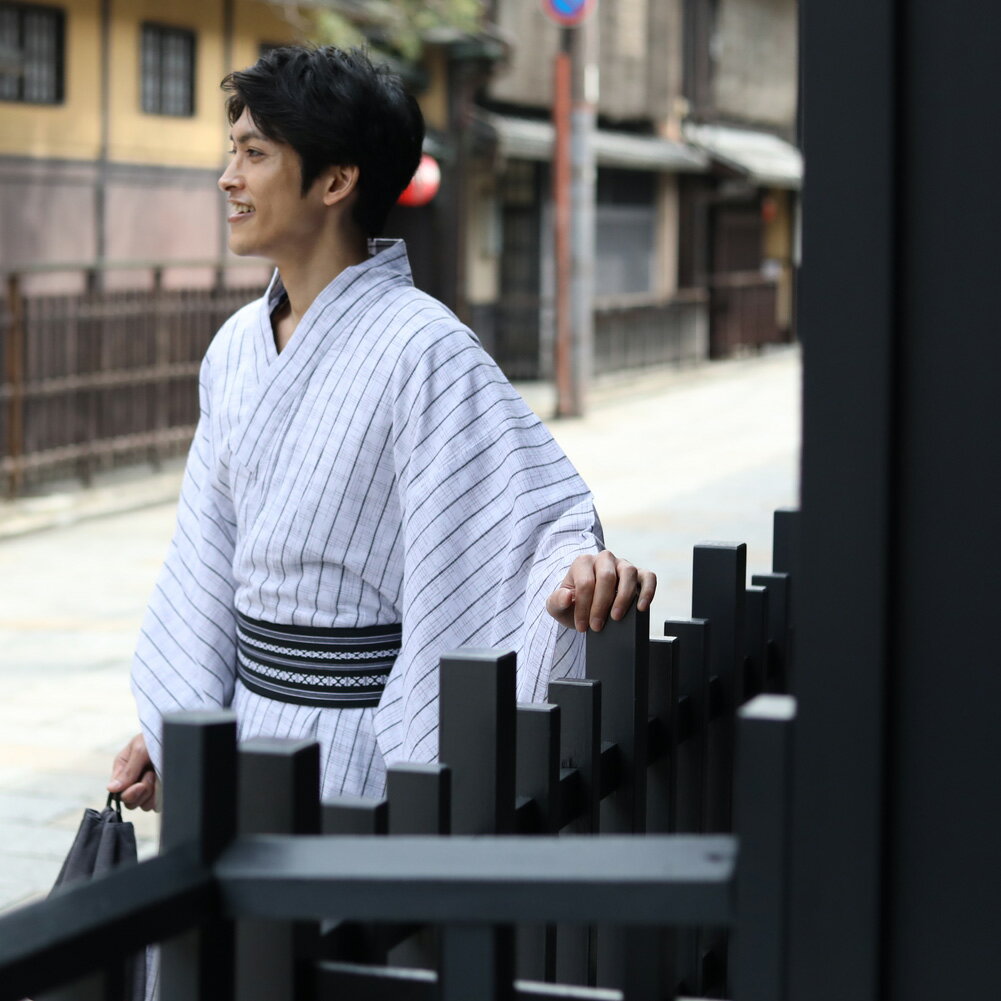 【11/4 20:00〜11/11 1:59まで最大2,000円OFFクーポン】浴衣 メンズ セット 男物高級綿浴衣3点セット「白地に縞柄と絣柄」父の日ギフト 男性 男 レトロ 大人 高級綿浴衣 角帯 下駄 M L LL