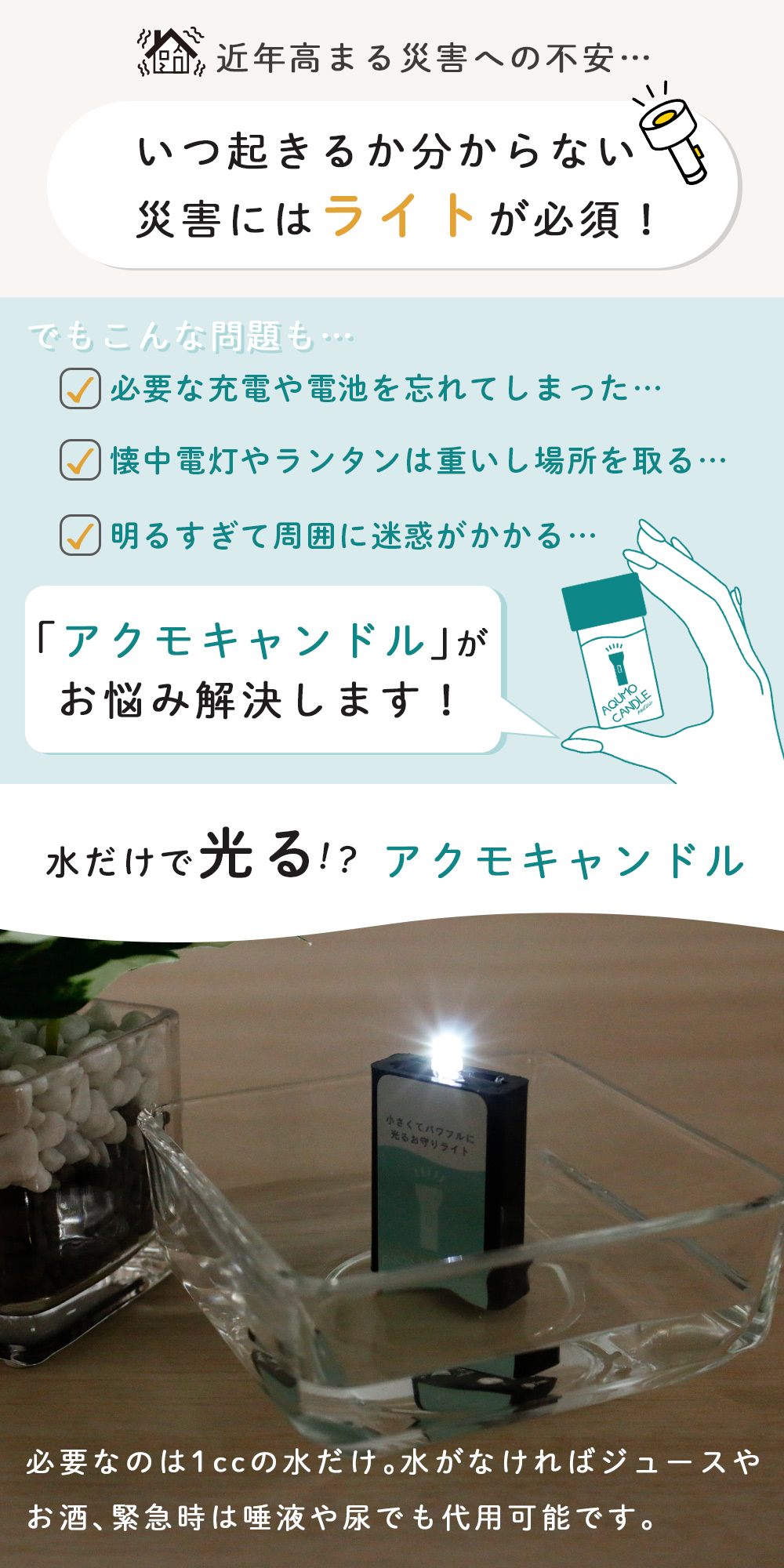 【mitas公式】日本製 アクモキャンドル 防災用灯 3個セット 6個セット 拡散型 LEDライト 電池不要 防災グッズ 緊急照明 明かり 水で光る 懐中電灯 ランタン 小型ライト 非常時 災害対策 停電 備え ルームランプ コンパクト 誘導灯 非常灯 地震 台風 キャンプ 車中泊 登山