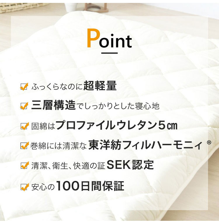 国産 固綿敷布団 プロファイルウレタン厚さ5cm シングルロング ポリエステル100% 敷布団 体圧分散 三層構造 軽量 防ダニ 抗菌 防臭 東洋紡フィルハーモニィ日本製 敷き布団(代引不可)【送料無料】