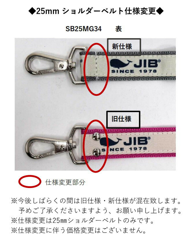 JIB ショルダーベルト 25mm幅/メタルパーツ/ロゴあり SB25MG34