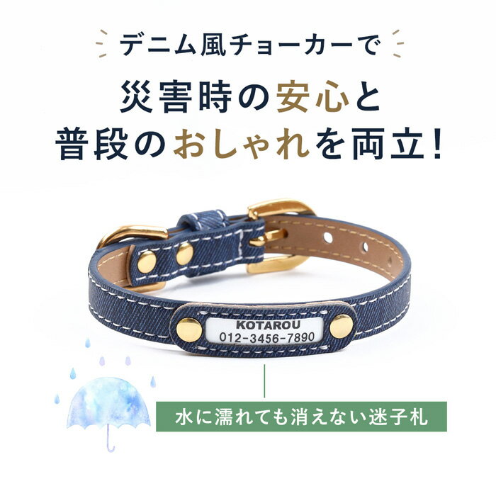 犬 猫 首輪 迷子札チョーカー おしゃれ かわいい 犬首輪 猫首輪 パピー用首輪 名前入り 名入れ ネーム入り ネームタグ 名札 ドッグタグ 超軽量 迷子札 超小型犬用首輪 いぬ ネコ 子犬 ブランド デニム 補助首輪 チョーカー maigo-dm