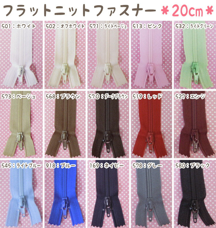 ファスナー 20cm フラットニット 全15色 FLATKNIT ニットテープにエレメントを編み込むことで、薄さと柔らかさを実現したファスナーです。 スポーツ アウトドア アパレル カジュアル 紳士・婦人服