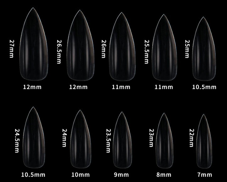 ネイルチップ アーモンド クリア 500枚セット (10サイズ×各50枚)ロング 透明 付け爪 ネイルアート ジェル ネイル 練習 オーバル