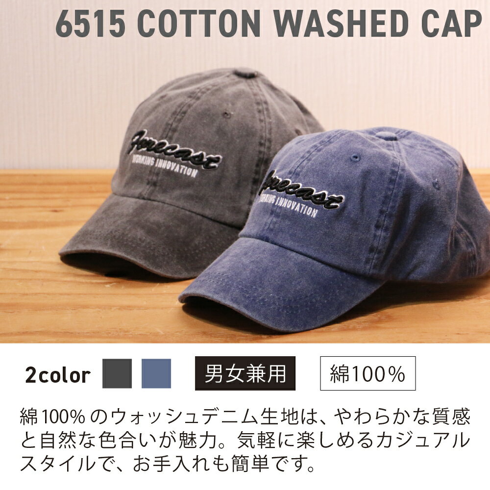 【ポイント5倍 4/24(金)20:00〜4/27(月)9:59】帽子 キャップ デニム 作業 メンズ レディース 男女兼用 フリーサイズ 仕事 配達 作業着 ワーク ワーカー 作業服 ユニフォーム 制服 ツバ 長い シンプル ワンポイント 6515 綿ウォッシュキャップ